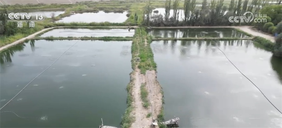 阿克蘇市潤澤養(yǎng)殖基地負(fù)責(zé)人 周京森:這兩個塘子占地16畝,水是來自天山的雪水,現(xiàn)在看上去水面很平靜,但是到了豐收的季節(jié),現(xiàn)在已經(jīng)上市了,我邀請你體驗一下我們的漁民生活。