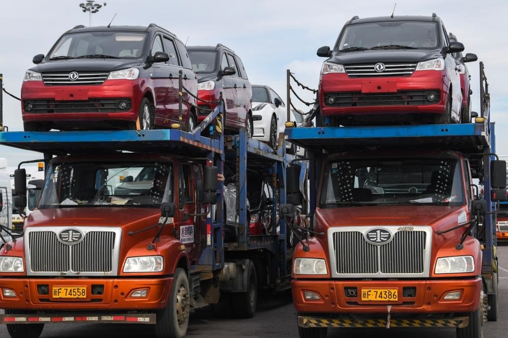 這是在霍爾果斯公路口岸等待出口的車(chē)輛(9月6日攝)。新華社記者 趙戈 攝