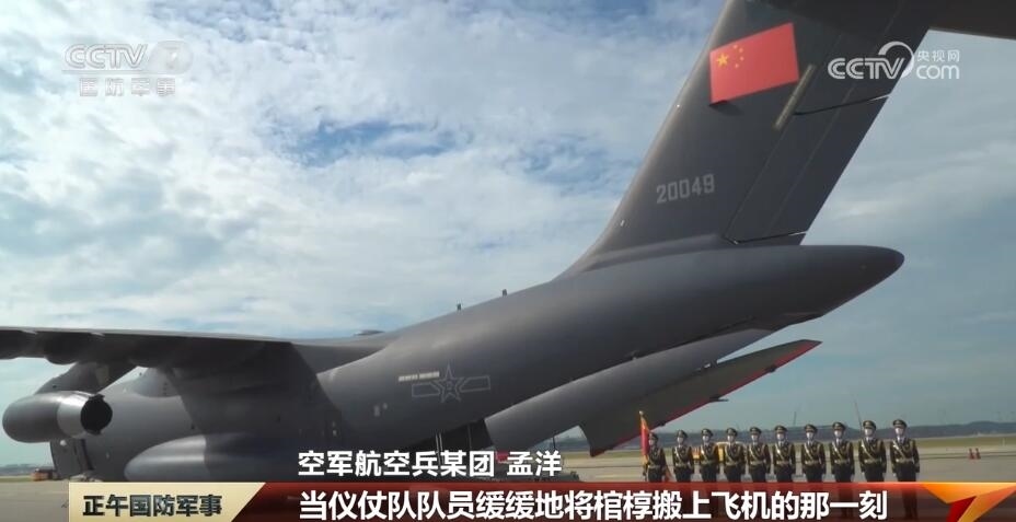 2022年9月,孟洋和機組成員駕駛運-20抵達韓國仁川機場,執(zhí)行接迎第九批在韓志愿軍烈士遺骸任務(wù)。