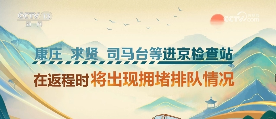 為應(yīng)對假期返程客流,交通部門加強(qiáng)組織做好地面交通銜接和保障。北京交通部門預(yù)計(jì),10月6日10時(shí)—22時(shí),京平高速北務(wù)服務(wù)區(qū)、京港澳高速竇店服務(wù)區(qū)進(jìn)京方向車流量大。康莊、求賢、司馬臺等進(jìn)京檢查站在返程時(shí)將出現(xiàn)擁堵排隊(duì)情況。