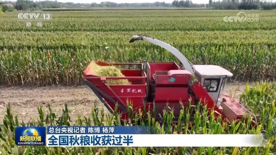 央視網(wǎng)消息(新聞聯(lián)播):農(nóng)業(yè)農(nóng)村部最新農(nóng)情調(diào)度顯示,眼下全國(guó)秋糧收獲過(guò)半,主產(chǎn)區(qū)已進(jìn)入收獲高峰。
