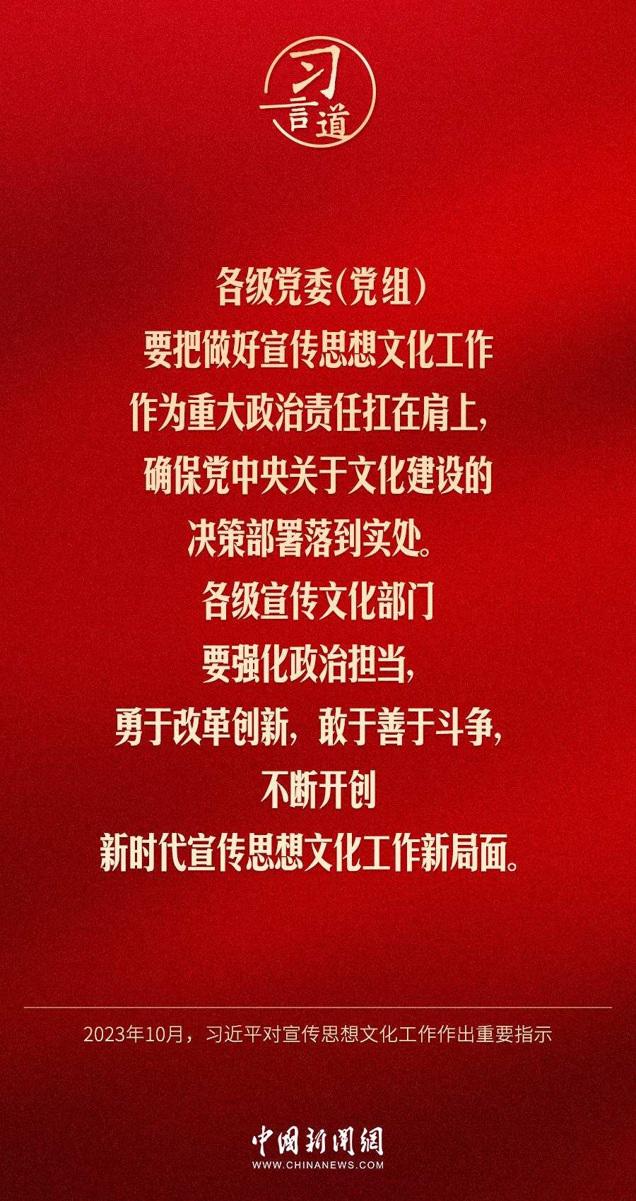 中共中央總書記、國家主席、中央軍委主席習近平近日對宣傳思想文化工作作出重要指示,他指出——