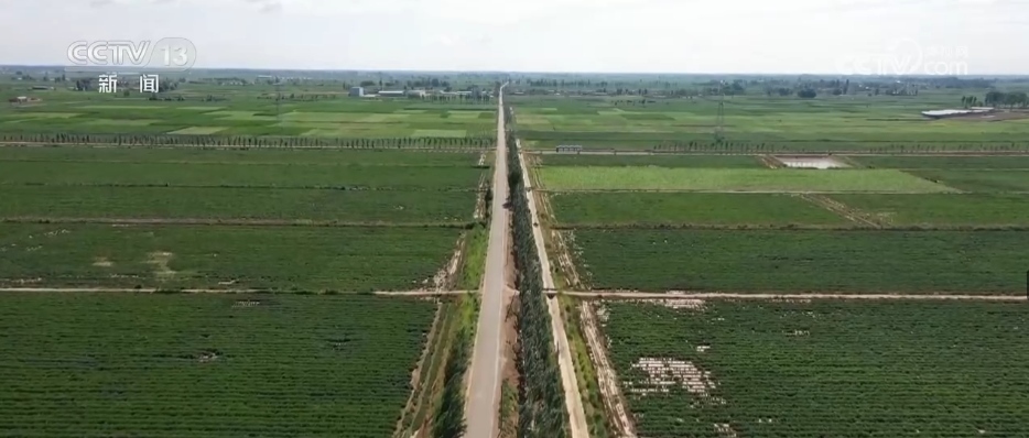 2017年,巴彥淖爾市規(guī)劃了484萬(wàn)畝鹽堿化耕地“改鹽增草(飼)興牧”示范工程,拉開(kāi)了全市改良鹽堿地的序幕。通過(guò)大規(guī)模土地整理,愛(ài)國(guó)村零散的土地被整合了起來(lái)?,F(xiàn)在行走在愛(ài)國(guó)村的田間地頭,遠(yuǎn)看路相連、渠相通、溝配套。近看有新的發(fā)現(xiàn),在地下40公分的位置,鋪設(shè)了一層秸稈,鹽隨水來(lái)、隨水去。在水分向上蒸發(fā)的同時(shí),能保證鹽分被阻攔在秸稈下面,這個(gè)被稱(chēng)為“上膜下秸”技術(shù)。而對(duì)于重度鹽堿地,當(dāng)?shù)卦诘叵?.8米的位置,每隔50公分鋪設(shè)了一些排水管道,能保證地下的水分隨時(shí)通過(guò)這些管道流到排水井里,最大程度地讓作物不受傷害,耕地質(zhì)量提高1—2個(gè)等級(jí)。