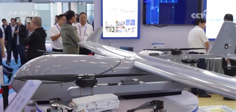 ?????? 在展會的未來產(chǎn)業(yè)館,“上天入?!钡母呖萍夹庐a(chǎn)品讓眾多觀眾駐足體驗?,F(xiàn)在您看到的就是一架垂直起降式的衛(wèi)星通信無人機,它搭載了國產(chǎn)的亞太衛(wèi)星技術,目前已經(jīng)被廣泛應用于應急救援、公安消防、水利農(nóng)林等各個領域,這個機器的翼展只有六米,可以適應各種地形的起降。?