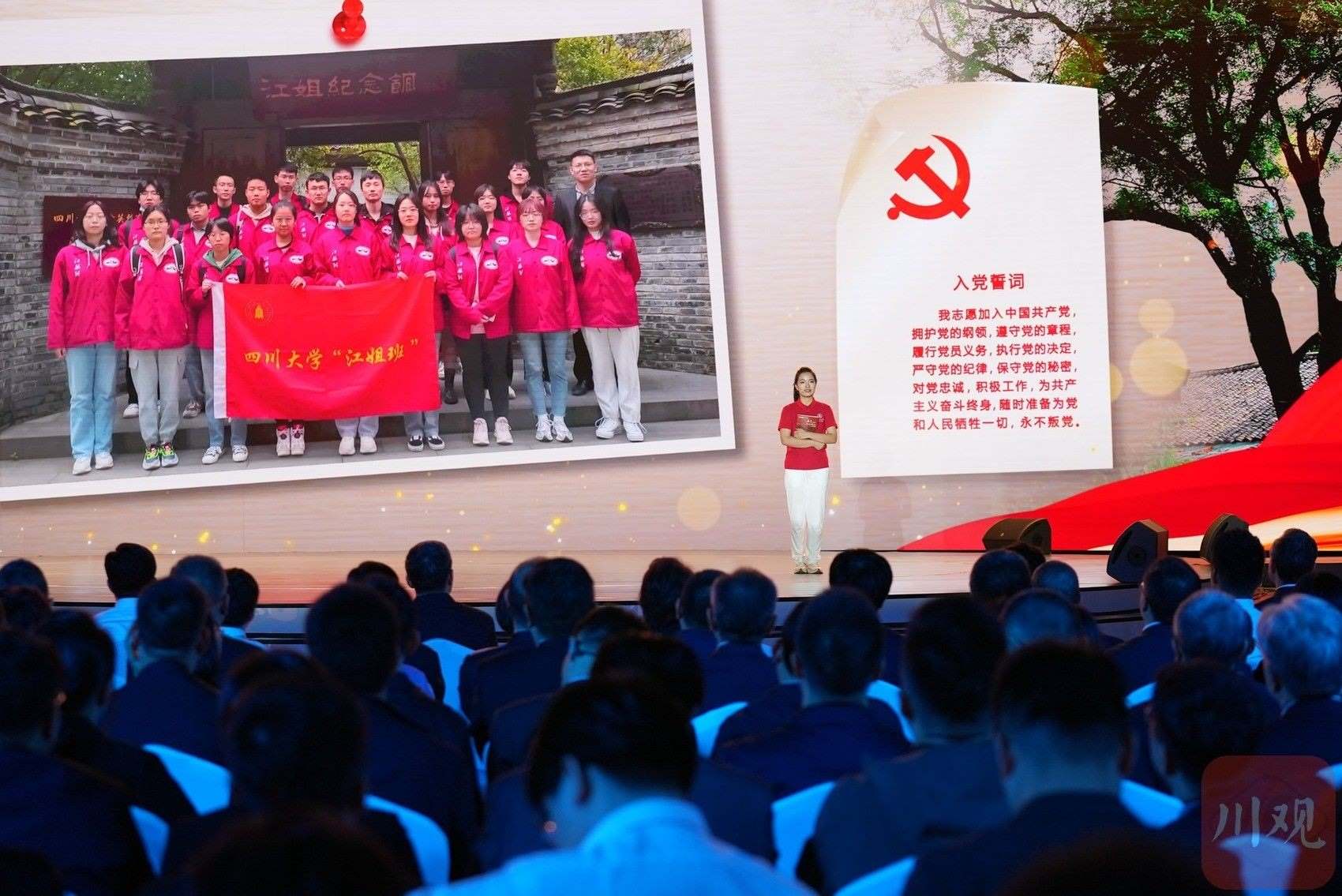 在 “錦水含章”篇章中,以歌曲《紅梅贊》引入,《江姐在川大》編劇冉詩(shī)媛、四川大學(xué)“江姐班”學(xué)生代表張鈺、“江姐紀(jì)念館”設(shè)計(jì)者段禹農(nóng)、第49屆南丁格爾獎(jiǎng)獲得者蔣艷和四川大學(xué)三星堆遺址考古隊(duì)隊(duì)長(zhǎng)黎海超等結(jié)合工作學(xué)習(xí)實(shí)踐,動(dòng)情講述傳承江姐精神矢志報(bào)國(guó)、援外抗疫展現(xiàn)大愛(ài)、創(chuàng)新賦能文博考古故事,生動(dòng)詮釋紅色傳承、文脈賡續(xù)、人民至上。