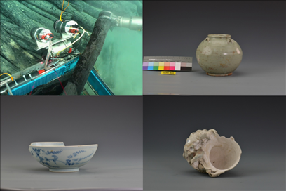 經(jīng)過調(diào)查,探明了一號、二號沉船遺址的分布范圍,在二處遺址核心堆積區(qū)的西南角布放水下測繪永久基點,完成了遺址三維激光掃描和一號沉船遺址核心區(qū)、環(huán)形散落區(qū)、部分條形散落區(qū)和二號沉船遺址核心區(qū)、散落區(qū)的攝影拼接,從一號沉船遺址提取出水文物標(biāo)本543件(套),二號沉船遺址提取出水遺物36件。