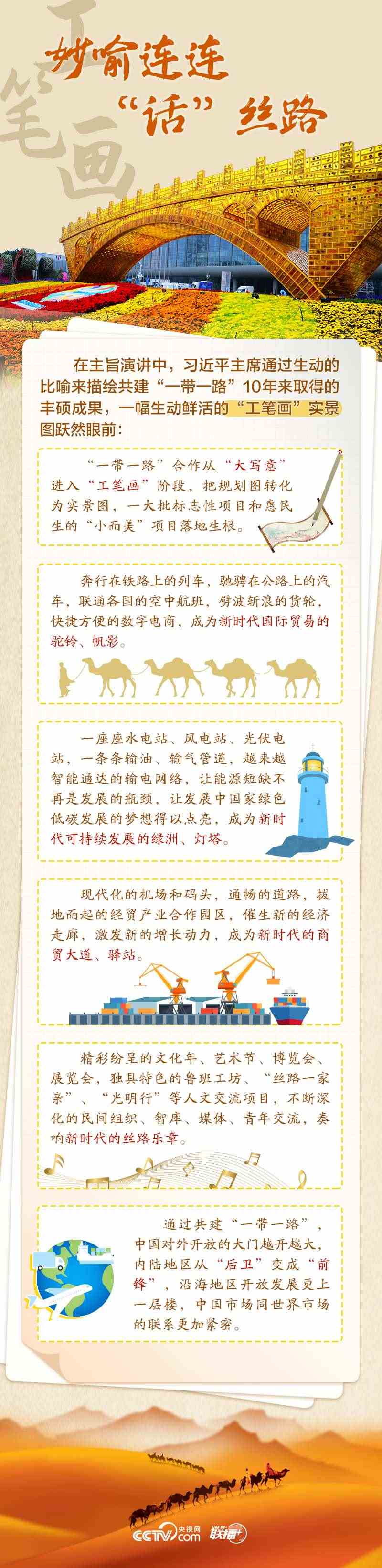 站在共建“一帶一路”倡議走過十年這個(gè)標(biāo)志性節(jié)點(diǎn),這幅“工筆畫”呈現(xiàn)怎樣的實(shí)景圖?高質(zhì)量共建“一帶一路”如何再出發(fā)?央視網(wǎng)《聯(lián)播+》欄目從五個(gè)維度為您速讀習(xí)主席講話,與您一同學(xué)習(xí)。