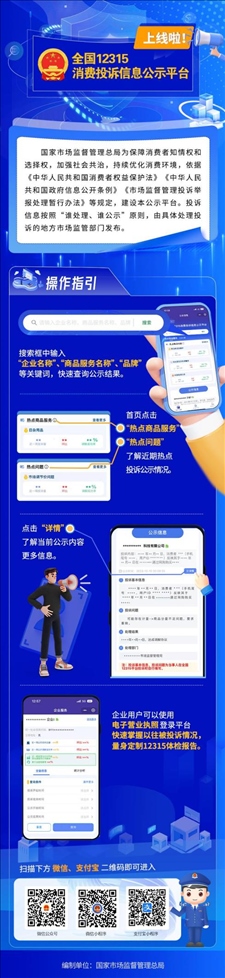 ·全國12315消費(fèi)投訴信息公示平臺(tái)上線,平臺(tái)網(wǎng)址為tsgs.12315.cn,小程序、公眾號(hào)名稱為“12315投訴公示”,可查詢特定商家投訴情況。