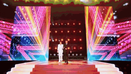 想象中的場景,可能是在聚光燈下,伴著丁達(dá)爾現(xiàn)象投射的粉塵光柱,看他帶著招牌笑容走來;也許是在幕布后邊黑乎乎的候場區(qū),看他熟練地繞開腳下的各種道具和電纜,拿著提詞手卡和工作人員討論細(xì)節(jié);又或者是在一個燈火通明的圓形會議室里,看他坐在有他名字的桌牌前,握著桌上的臺式小麥克風(fēng)發(fā)言……