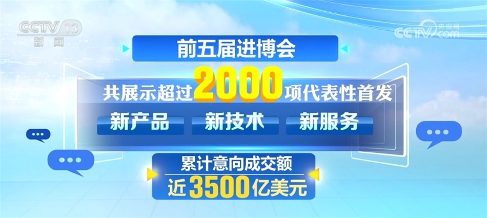 前五屆進博會共展示超過2000項代表性首發(fā)新產品、新技術、新服務,累計意向成交額近3500億美元。今年,322家進博會展商走進地方,有力促進“展商變投資商”。