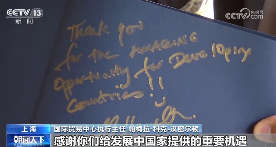 國際貿易中心執(zhí)行主任 帕梅拉·科克-漢密爾頓:進博會最重要的是,它是一個無與倫比的進口平臺。一個國家邀請人們來共享進口機遇,這是創(chuàng)新之舉。對我們來說,這是雙贏(的機遇)。它為(各國企業(yè))進入一個擁有巨大市場的國家提供了平臺,也為(各國及企業(yè))建立聯(lián)系網(wǎng)絡,建立伙伴關系提供了重要的平臺,使各國能夠成為供應鏈的一部分,更好地參與到全球經(jīng)濟合作之中。