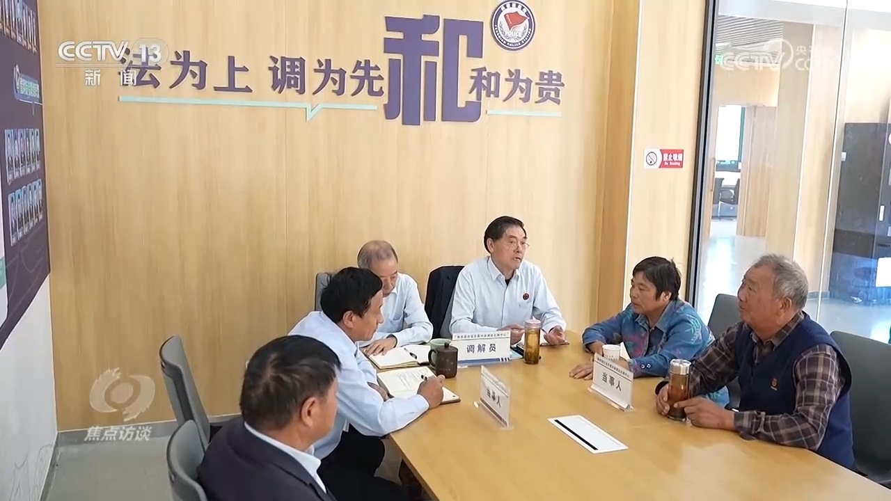浙江省諸暨市楓橋鎮(zhèn)杜黃新村黨委書記、人民調(diào)解委員會(huì)主任王海軍:“村里一般的調(diào)解村兩委會(huì)以及村調(diào)委基本上就地解決,因?yàn)椤畻鳂蚪?jīng)驗(yàn)’矛盾不出村,所以我們一般在村里面解決。但是涉及到法律法規(guī)一塊或者有些老百姓在‘心結(jié)’上面解不開,我們就動(dòng)用共享法庭?!?/p>