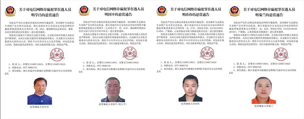 ·公安機(jī)關(guān)公開(kāi)通緝緬北果敢自治區(qū)電信網(wǎng)絡(luò)詐騙犯罪集團(tuán)重要頭目明學(xué)昌、明國(guó)平、明菊蘭、明珍珍。