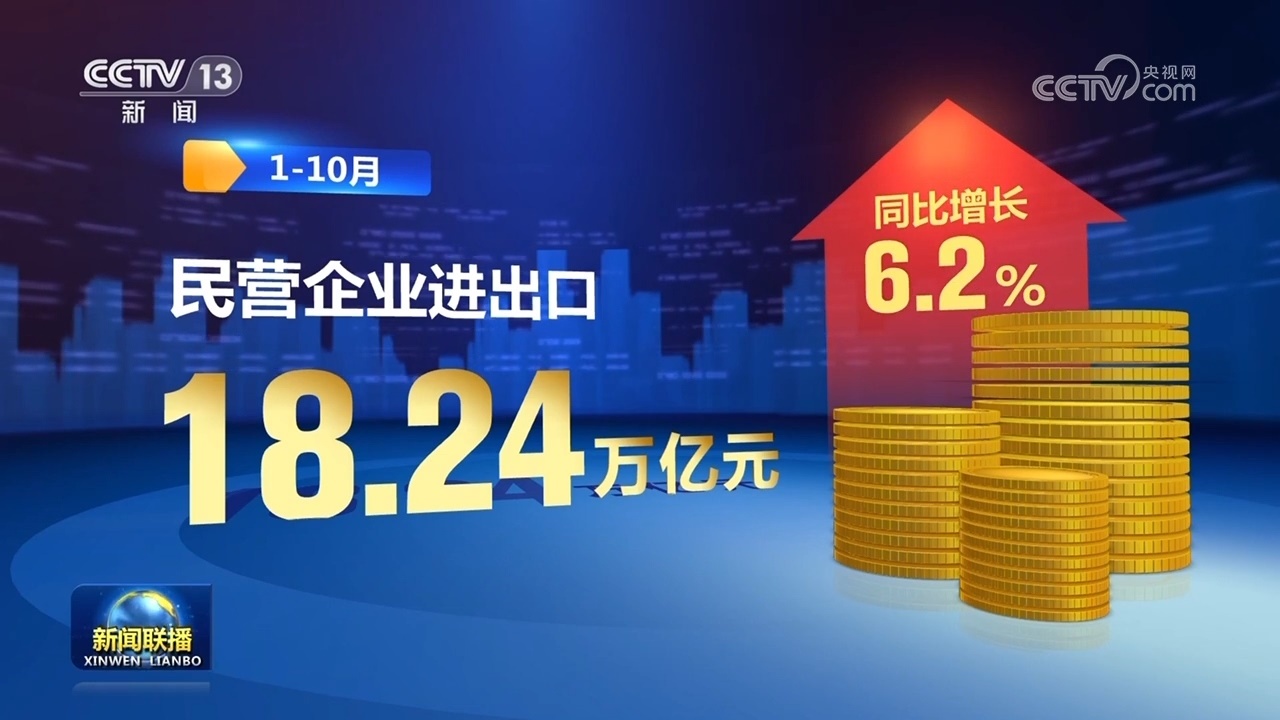 新動能帶動作用持續(xù)釋放,推動外貿(mào)領(lǐng)域積極因素累積增多。前三季度跨境電商進(jìn)出口額達(dá)1.7萬億元,同比增長14.4%,保持較快增長。貿(mào)易結(jié)構(gòu)優(yōu)化升級,1—10月,我國一般貿(mào)易進(jìn)出口增長1.8%,占我國外貿(mào)總值的64.9%,比去年同期提升1.1個百分點(diǎn)。民營企業(yè)進(jìn)出口18.24萬億元,同比增長6.2%,成為穩(wěn)外貿(mào)主力軍。