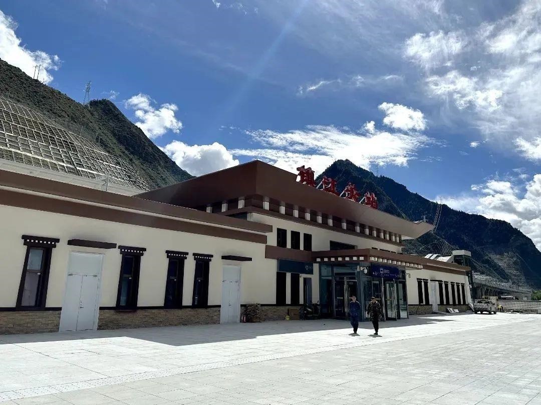 鎮(zhèn)江關(guān)站采用立面三段式的建筑形式,屋檐上獨(dú)有的藏族文化元素體現(xiàn)出該地區(qū)的民族特色。