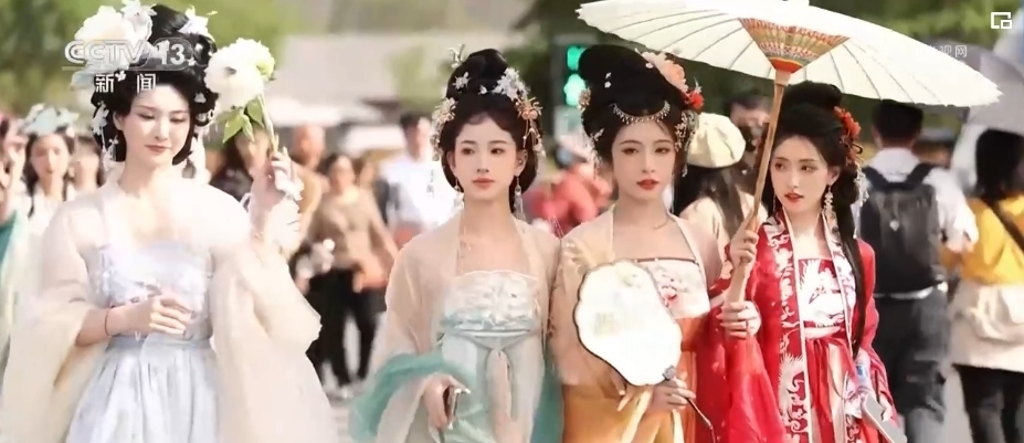 央視網(wǎng)消息:一段時間以來,漢服熱度持續(xù)走高。在城市街頭、名勝古跡、公園綠地、商場市集,都常常能見到人們身著漢服拍照“打卡”。漢服為什么會被大家喜愛?如何來體驗漢服?