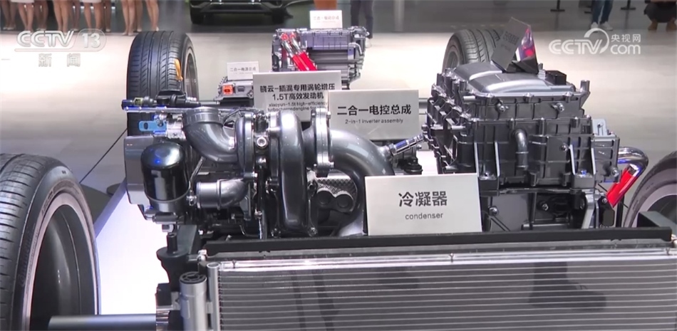 在1100多臺展車中,新能源車占比超過40%,達到469臺,其中,中國品牌展出的數(shù)量為350臺。不僅是展車的數(shù)量上占了絕大多數(shù),中國品牌在新技術(shù)上也在不斷更新迭代。眼前的這個超級電驅(qū)智能技術(shù)平臺,其最核心的部件——增程器,參展企業(yè)研發(fā)到了第三代,最高油電轉(zhuǎn)換率比第二代提高了近10%。