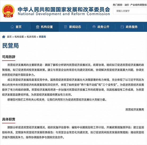 ·國(guó)家發(fā)改委民營(yíng)經(jīng)濟(jì)發(fā)展局網(wǎng)頁(yè)上線。