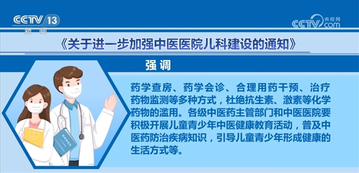 ?????? 央視網(wǎng)消息:國家中醫(yī)藥管理局近日發(fā)布了《關(guān)于進(jìn)一步加強(qiáng)中醫(yī)醫(yī)院兒科建設(shè)的通知》,就加強(qiáng)中醫(yī)醫(yī)院兒科建設(shè)提出相關(guān)舉措,以充分發(fā)揮中醫(yī)藥在保障兒童健康中的重要作用。