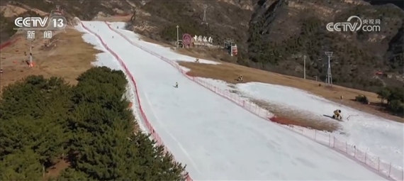 國家高山滑雪中心運行總監(jiān) 吳高勝:今年計劃開放的這個雪道面積是60萬平方米,現(xiàn)在已經(jīng)投入造雪設備170臺、壓雪設備13臺,現(xiàn)在全面開展造雪和推雪工作。