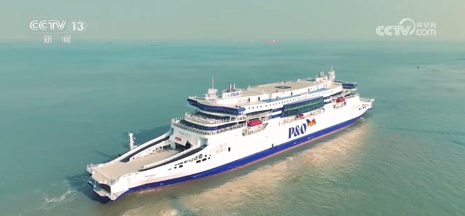 中國船舶廣船國際客滾船大項目經(jīng)理 李會倫:這艘船采用雙頭設計,進出港不用調頭,船員可分別在兩個駕駛室駕駛這艘船,因此可以節(jié)省大量進出港時間。船上共配備了1160塊大容量電池,電池裝船容量達到8.8兆瓦時,相當于150輛電動汽車的電池容量之和,可在近海航行時采用全電力推進,實現(xiàn)零排放。