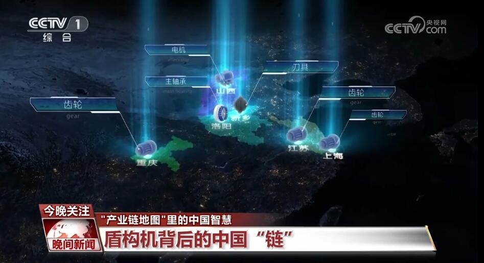 盾構(gòu)機(jī)又稱“鋼鐵穿山甲”,是開挖隧道的利器。一臺盾構(gòu)機(jī)拆解下來,由1萬多個零部件組成?,F(xiàn)在我們看到的是這些零部件的“產(chǎn)業(yè)鏈地圖”。可以看到,刀具和主軸承主要聚集在河南,電機(jī)主要是在山西,齒輪主要分布在長三角和重慶。而如果回到十年前,當(dāng)時,這條產(chǎn)業(yè)鏈上還存在一些短板和斷點(diǎn)。像軸承、減速機(jī)、刀具這樣的關(guān)鍵部件,國內(nèi)企業(yè)還制造不了。可如今,盾構(gòu)機(jī)“心臟”核心零部件的關(guān)鍵技術(shù)已經(jīng)突破。我國盾構(gòu)機(jī)的上下游企業(yè)已經(jīng)有上千家,僅中鐵裝備,盾構(gòu)機(jī)訂單總數(shù)就超過1600臺,出口全球30多個國家和地區(qū),產(chǎn)銷量連續(xù)六年世界第一。