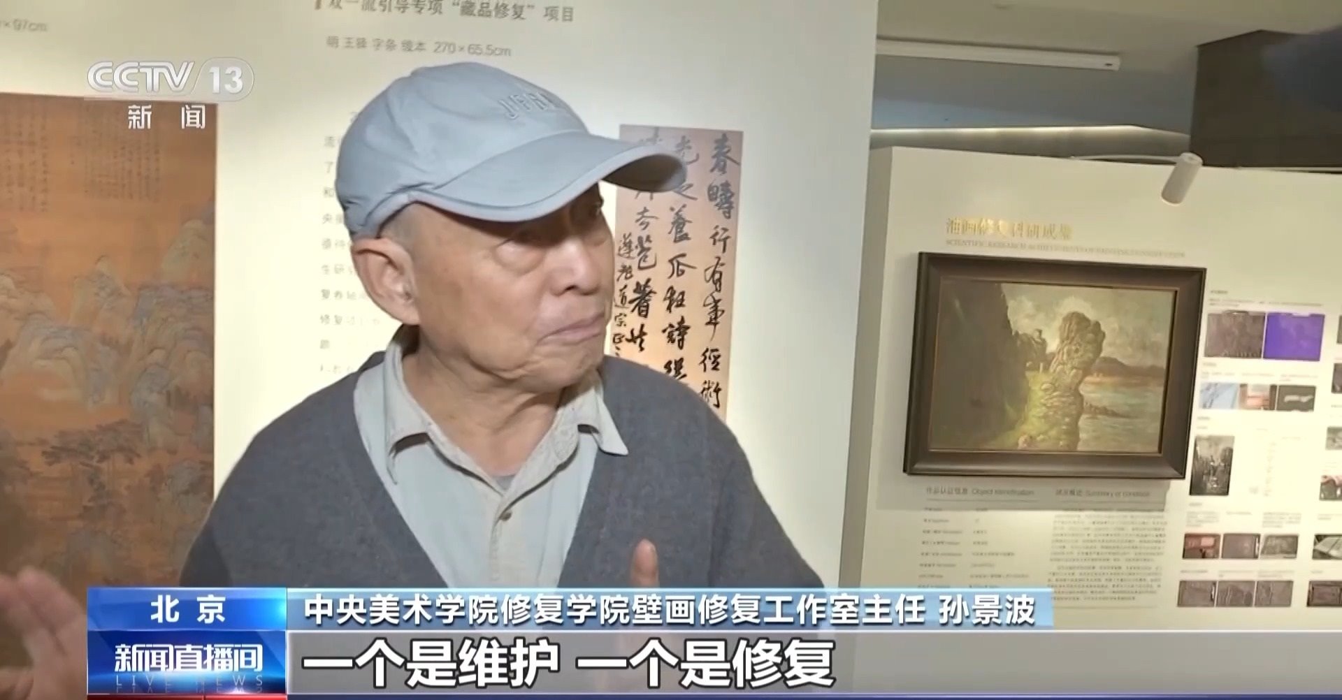 中央美術(shù)學(xué)院修復(fù)學(xué)院壁畫修復(fù)工作室主任 孫景波:我認(rèn)為第一叫保護(hù),保護(hù)里面有兩個,一個是維護(hù),一個是修復(fù)。維護(hù)是第一要義?,F(xiàn)有狀況能維護(hù)住的,這是最重要的。