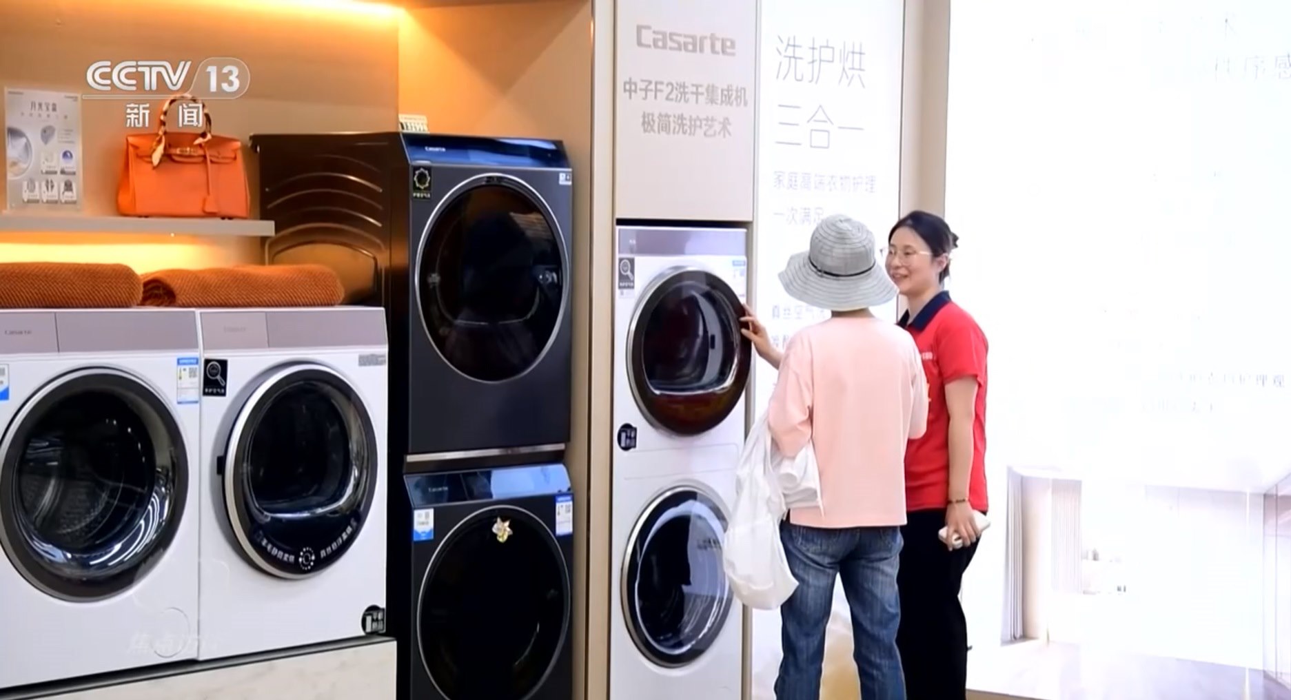 如今,在鄉(xiāng)鎮(zhèn)的一些賣場,面積更大、分類更細(xì)致的商業(yè)綜合體越來越常見。從居民選購內(nèi)容來看,冰箱、電視、洗衣機傳統(tǒng)三大件早已司空見慣,更加智能化、綠色化的家電新大件也進(jìn)入縣城消費者的“菜單”,其中烘干機、洗碗機、洗地機新三大件銷售增長最為明顯。