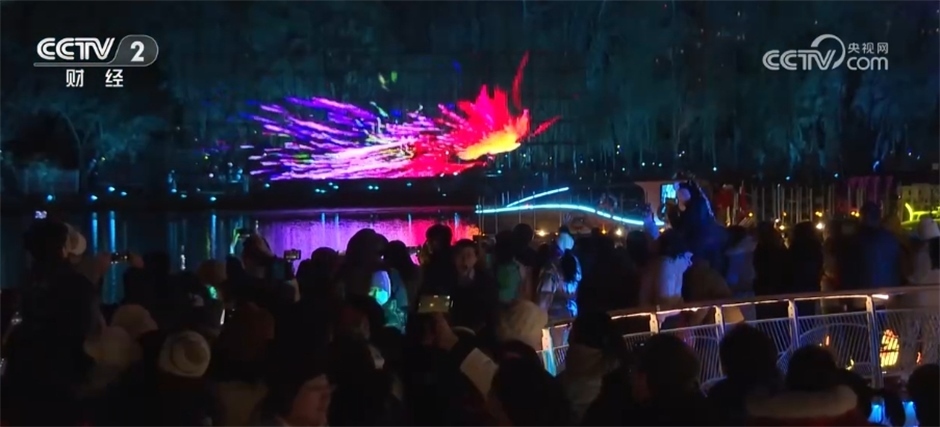 總臺記者 魏雨彤:我現(xiàn)在所在的商圈正是燈光節(jié)的核心區(qū)域,柔和的燈光線條點亮樓宇建筑的天際線,一路繁華一路景,各色燈光交相輝映,讓夜晚變得多姿多彩。