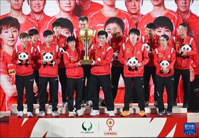 國乒九戰(zhàn)全勝奪得混合團體世界杯冠軍。