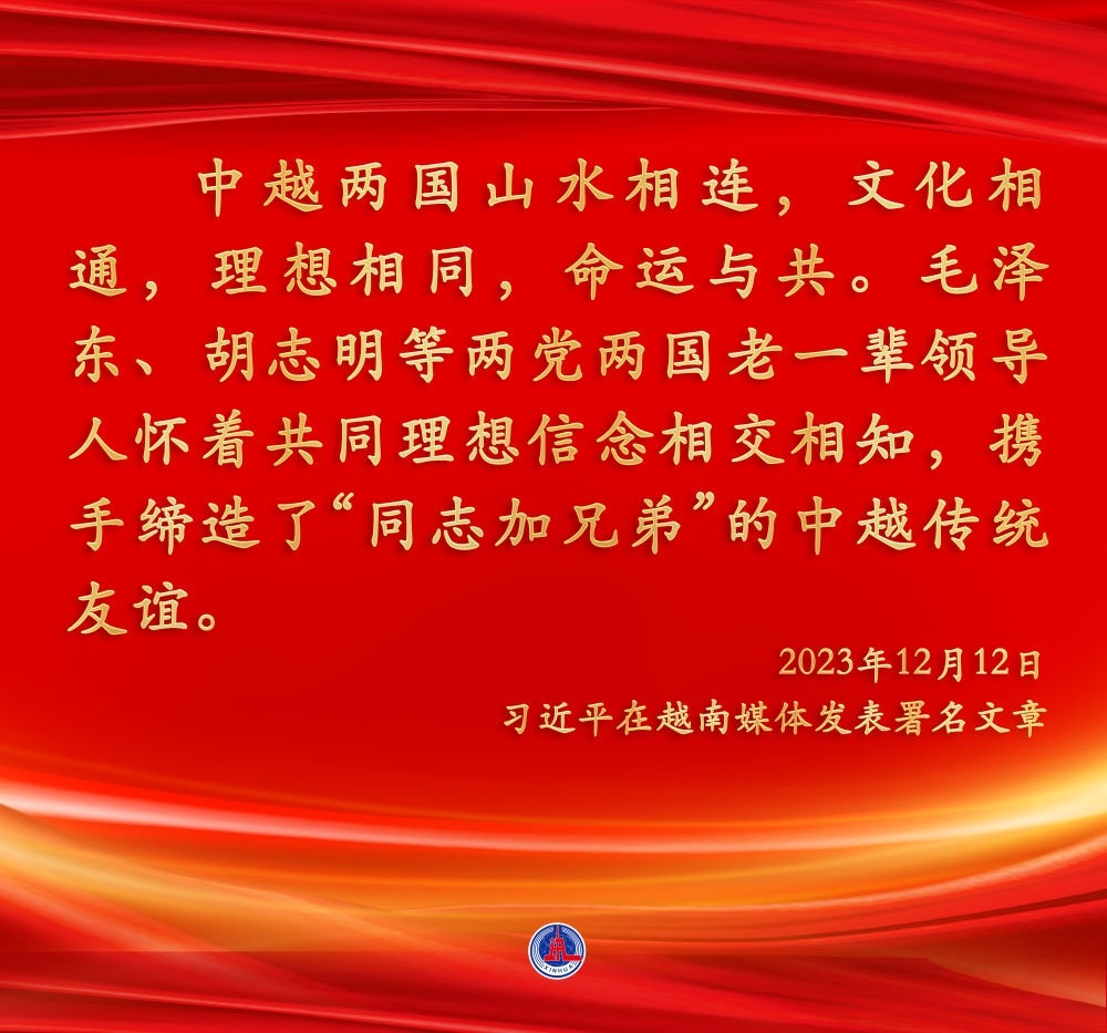 兩位總書記都認(rèn)為,中越作為友好近鄰,理想相同,理念相通。作為好鄰居、好伙伴、好兄弟、好同志,中越構(gòu)建具有戰(zhàn)略意義的命運(yùn)共同體具有天時(shí)、地利、人和的獨(dú)特優(yōu)勢(shì)。雙方應(yīng)該繼承老一輩領(lǐng)導(dǎo)人締結(jié)的傳統(tǒng)友誼,共同努力構(gòu)建命運(yùn)共同體,走好各自的現(xiàn)代化道路,實(shí)現(xiàn)互利共贏、美美與共,造福兩國人民,也為地區(qū)和平與繁榮作出積極貢獻(xiàn)。