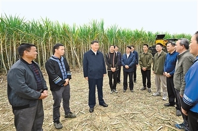 14日下午,習近平到來賓市考察調(diào)研。在國家現(xiàn)代農(nóng)業(yè)產(chǎn)業(yè)園黃安優(yōu)質(zhì)“雙高”糖料蔗基地,習近平察看萬畝甘蔗林和機械化作業(yè)收割場景,聽取基地情況介紹。他走進甘蔗林,詳細了解甘蔗良種繁育技術(shù)要領(lǐng),同蔗農(nóng)、農(nóng)機手和農(nóng)技人員親切交流。習近平指出,廣西是我國蔗糖主產(chǎn)區(qū),要把這一特色優(yōu)勢產(chǎn)業(yè)做強做大,為保障國家糖業(yè)安全、促進蔗農(nóng)增收致富發(fā)揮更大作用。要積極培育和推廣良種、提高機械化作業(yè)水平,建設(shè)好現(xiàn)代農(nóng)業(yè)產(chǎn)業(yè)園。要探索建立更加穩(wěn)定的利益聯(lián)結(jié)機制,讓廣大農(nóng)民共享農(nóng)村改革和發(fā)展成果。他祝愿鄉(xiāng)親們的生活像甘蔗一樣甜蜜。