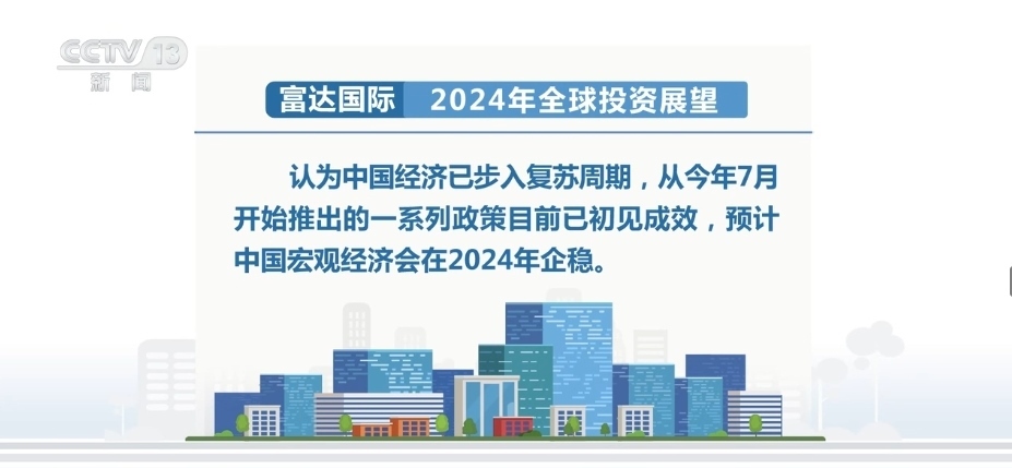深耕中國多年的富達國際在月初發(fā)布的2024年全球投資展望認為中國經(jīng)濟已步入復(fù)蘇周期,從2023年7月開始推出的一系列政策目前已初見成效,預(yù)計中國宏觀經(jīng)濟會在2024年企穩(wěn)。