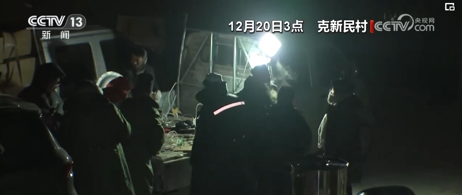 12月20日凌晨3時,村里幾乎沒有人在走動,安置點下方卻突然來了10多個人支起了攤。上前打聽才知道,原來是一支由各地開餐館的愛心人士組成的小分隊,帶著食材來到了村里,準備為受災群眾們免費提供三餐。