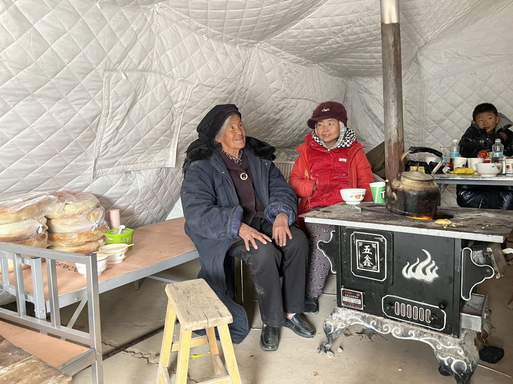 張郭家村是個(gè)小村,總共才350多人。地震發(fā)生后,全村絕大多數(shù)房屋受損,通村道路遭遇塌方,萬(wàn)幸無人遇難。群眾積極自救互救,州縣鄉(xiāng)三級(jí)干部下沉,工作有序開展。19日晚至20日晨,部隊(duì)官兵徹夜為村上搭建起26頂帳篷。零下十幾度的夜晚,群眾再也不用在戶外燒柴取暖了。