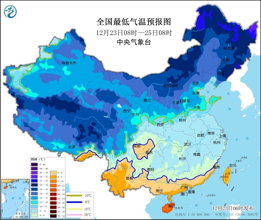 央視網消息:中央氣象臺12月23日06時發(fā)布低溫藍色預警:預計,12月23日08時至25日08時,內蒙古河套地區(qū)、陜西北部、華北西部和中南部、東北地區(qū)南部、黃淮及其以南大部地區(qū)日最低氣溫或平均氣溫較歷史同期偏低5℃以上,其中,內蒙古河套地區(qū)、遼寧北部、河北中南部、江南大部、華南北部等地的部分地區(qū)偏低7℃以上,最低氣溫0℃線將位于貴州西南部至華南北部一帶。