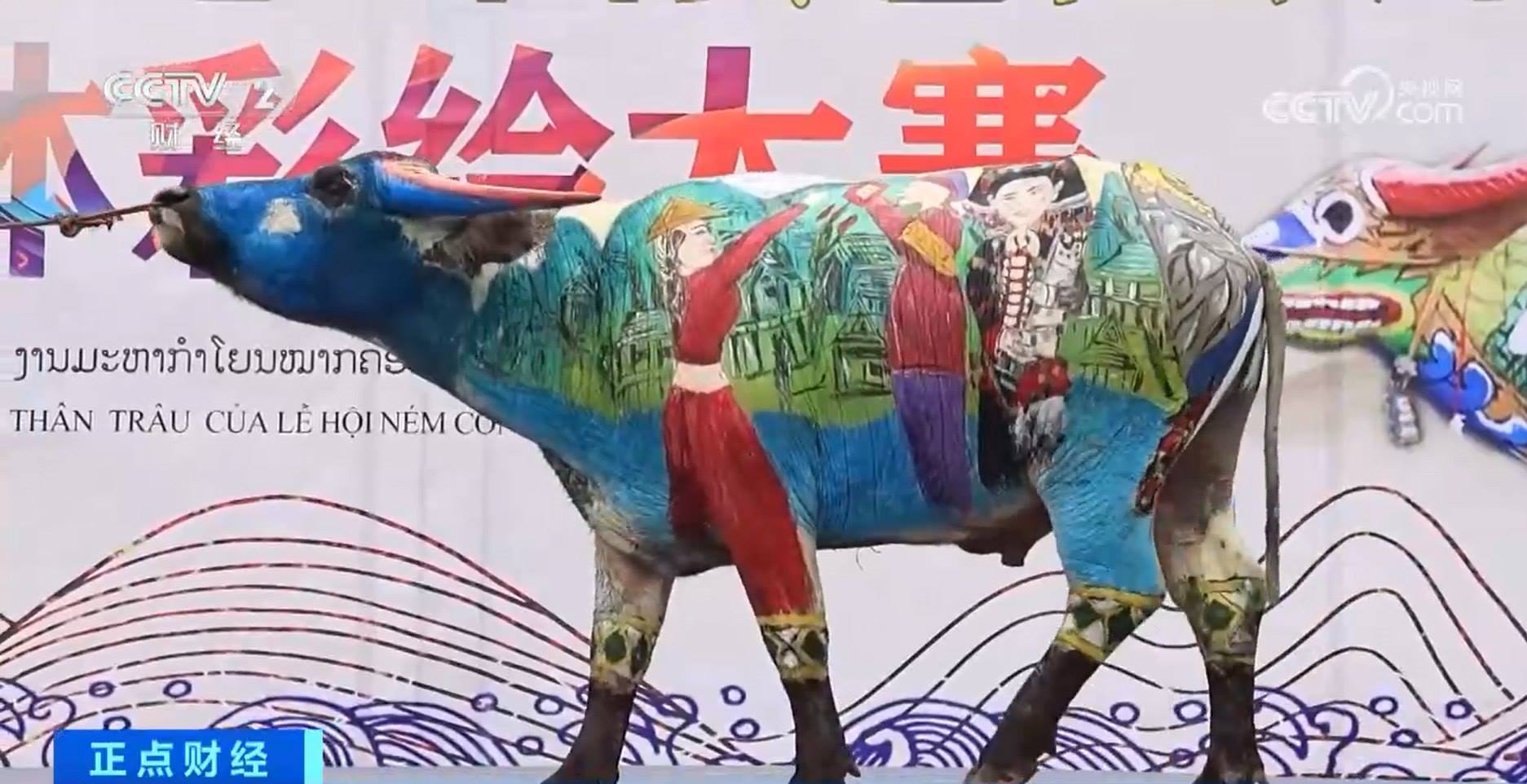 牛體彩繪源于當(dāng)?shù)孛耖g,并得到廣泛流傳,其初衷是在牛身上涂上顏色以威懾猛獸。如今,牛體彩繪被賦予了新的寓意。每當(dāng)歲末年初,中老越三國邊民都會(huì)把牛裝扮一新,感謝牛的辛勤勞作,期待新的一年五谷豐登。