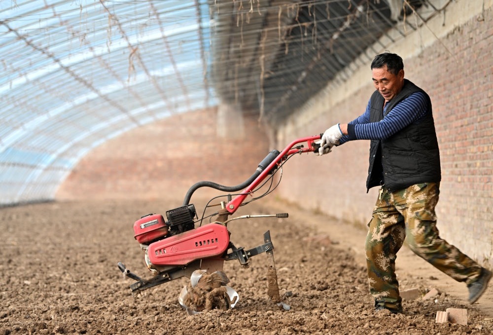 在天津市西青區(qū)辛口鎮(zhèn)水高莊村,農戶在修繕后的大棚內勞作(12月12日攝)。新華社記者 李然 攝