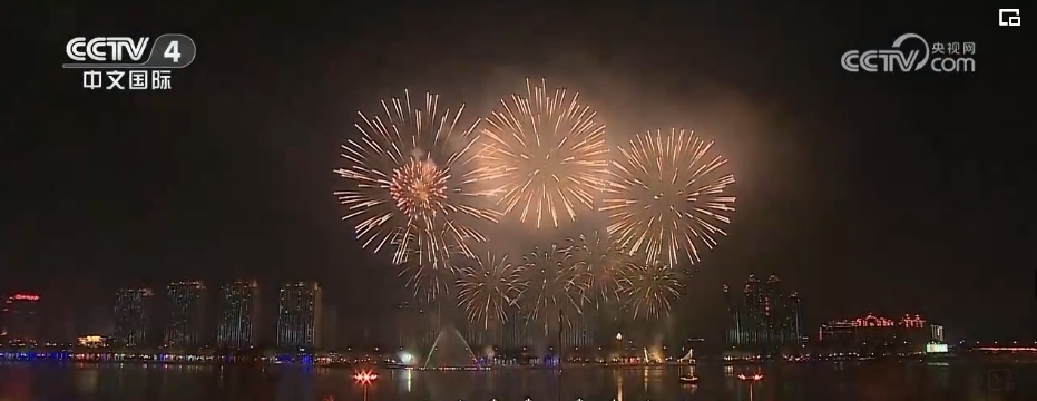 在吉林省吉林市,當(dāng)?shù)嘏e辦了大型煙花秀,一簇簇寓意著幸福安康、歡樂(lè)祥和的禮花騰空而上,點(diǎn)亮了松花江畔的夜空。