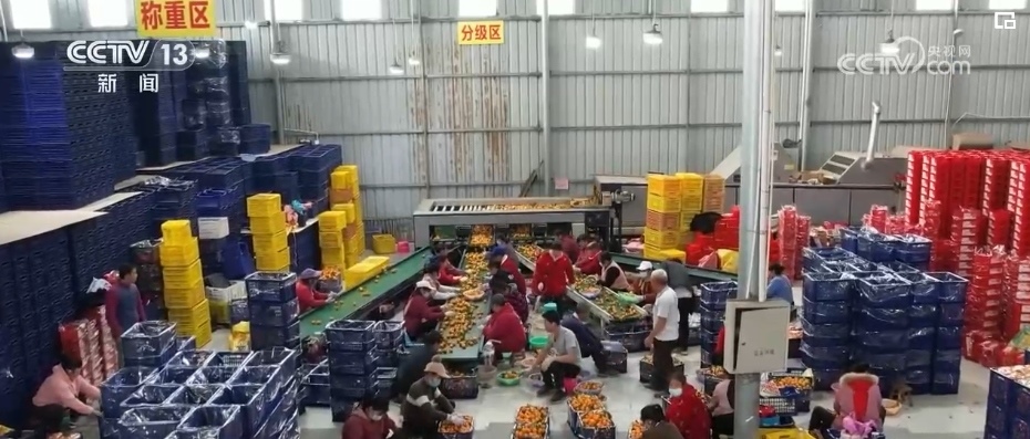 雙向奔赴的情誼在網(wǎng)上不斷發(fā)酵,也帶熱了砂糖橘的銷量。在荔浦這家選果廠車間,機械轟鳴不停運轉,一批批優(yōu)質水果被分送到運輸帶上,經(jīng)過裝筐、打包、貼標簽、搬運、裝車,新鮮的水果被送往全國各地。