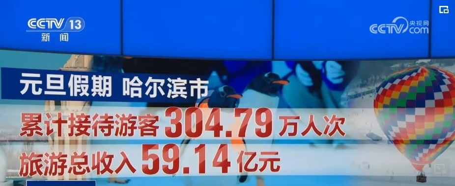 元旦期間,哈爾濱中央大街人山人海。東北虎林園、哈爾濱極地公園、松花江冰雪嘉年華、太陽島雪博會,也都成為熱門的旅游目的地。