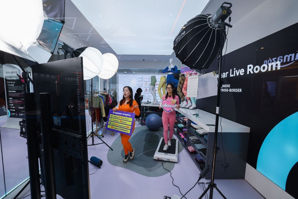 2023年11月23日,在浙江杭州舉行的第二屆全球數(shù)字貿(mào)易博覽會絲路電商館,跨境電商進(jìn)行直播銷售。新華社記者 徐昱 攝