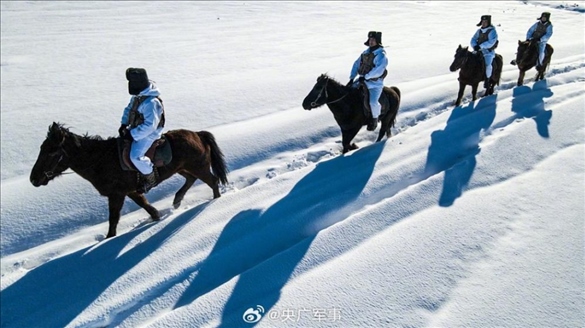 -30℃!邊防新戰(zhàn)士騎馬踏雪巡邊關(guān)。