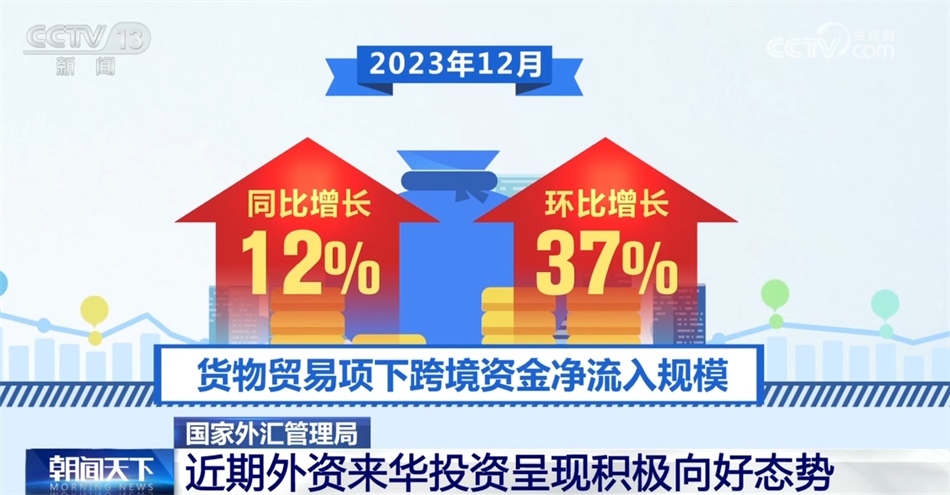 國家外匯管理局數(shù)據(jù)顯示,2023年12月,我國貨物貿(mào)易保持較高規(guī)模資金凈流入,近期外資來華投資呈現(xiàn)積極向好態(tài)勢。