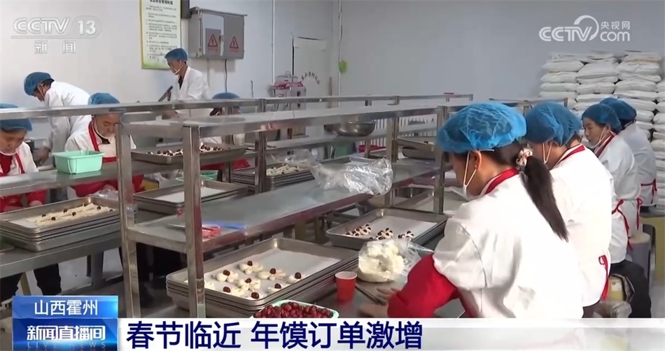 在山西霍州市的年饃加工廠里,制作年饃的師傅們異常忙碌。據(jù)了解,當(dāng)?shù)胤昴赀^節(jié)都會有做年饃、買年饃、品年饃的民俗,隨著春節(jié)臨近,工廠的年饃需求量激增?;糁菔姓限r(nóng)村集體經(jīng)濟(jì)合作社資源,吸納全市12個(gè)鄉(xiāng)鎮(zhèn)的120余家加工實(shí)體加入,趕做訂單。