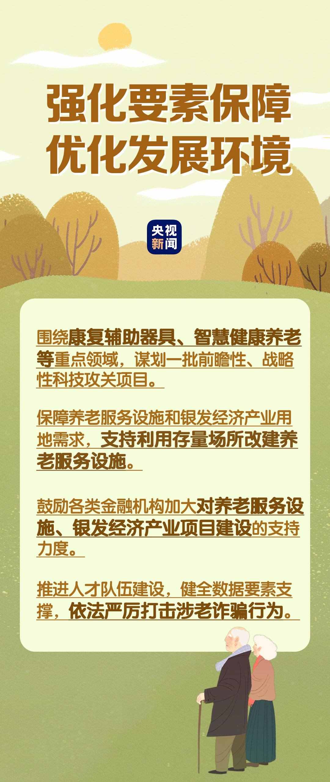在民生事業(yè)方面,國(guó)家將擴(kuò)大和發(fā)展七方面的服務(wù),包括養(yǎng)老助餐、居家助老、社區(qū)便民、老年健康、養(yǎng)老照護(hù)、老年文體、農(nóng)村養(yǎng)老等方面的服務(wù)。國(guó)務(wù)院辦公廳印發(fā)《關(guān)于發(fā)展銀發(fā)經(jīng)濟(jì)增進(jìn)老年人福祉的意見》中提出了4個(gè)方面舉措,小編根據(jù)文件內(nèi)容進(jìn)行了簡(jiǎn)要梳理,一圖了解“銀發(fā)經(jīng)濟(jì)”核心要點(diǎn)。↓↓↓
