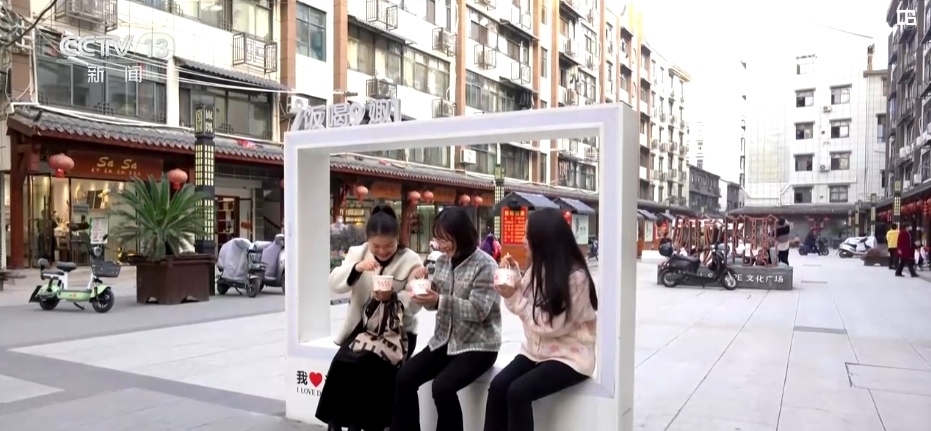 不僅如此,當?shù)剡€對巷子的屋頂、外墻、地面等進行升級改造。原來破舊的商業(yè)街改造后白墻黛瓦、古樸有致,并且融入了很多時尚的元素。用彩燈制成的當?shù)鼐包c示意圖、主題雕塑、方言地標休息區(qū)等受到年輕人的喜愛。環(huán)境好了,人氣也旺了,曾經(jīng)的“水巷子”徹底擺脫“水”的標簽。