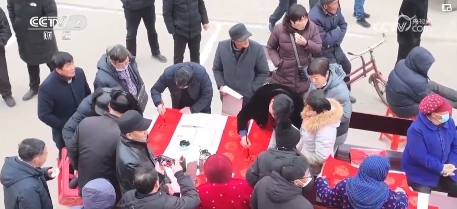除了琳瑯滿目的年貨,當(dāng)?shù)剡€準(zhǔn)備了豐富多彩的文藝節(jié)目?;磩 ⒖彀?、小品,好戲連臺(tái)。現(xiàn)場(chǎng)創(chuàng)作的大紅“?!弊趾鸵环矐c春聯(lián),讓人們感受著濃濃的“年味”。