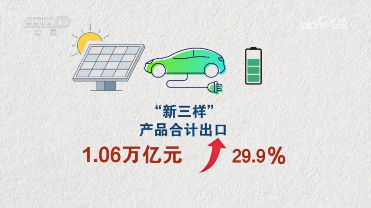 2023年,我國出口機電產(chǎn)品13.92萬億元,增長了2.9%,占出口總值的58.6%;同期勞動密集型產(chǎn)品出口4.11萬億元,占出口總值的17.3%。機電產(chǎn)品中,電動載人汽車、鋰離子蓄電池及太陽能電池“新三樣”產(chǎn)品合計出口1.06萬億元,首次突破萬億元大關(guān),增長了29.9%。船舶、家用電器的出口分別增長35.4%和9.9%。