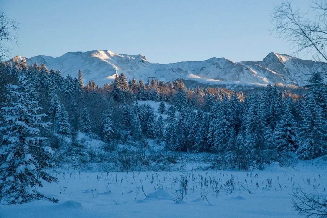 △2023年12月17日,吉林撫松縣松江河鎮(zhèn),長(zhǎng)白山西坡為大雪覆蓋,景色如畫(huà)。